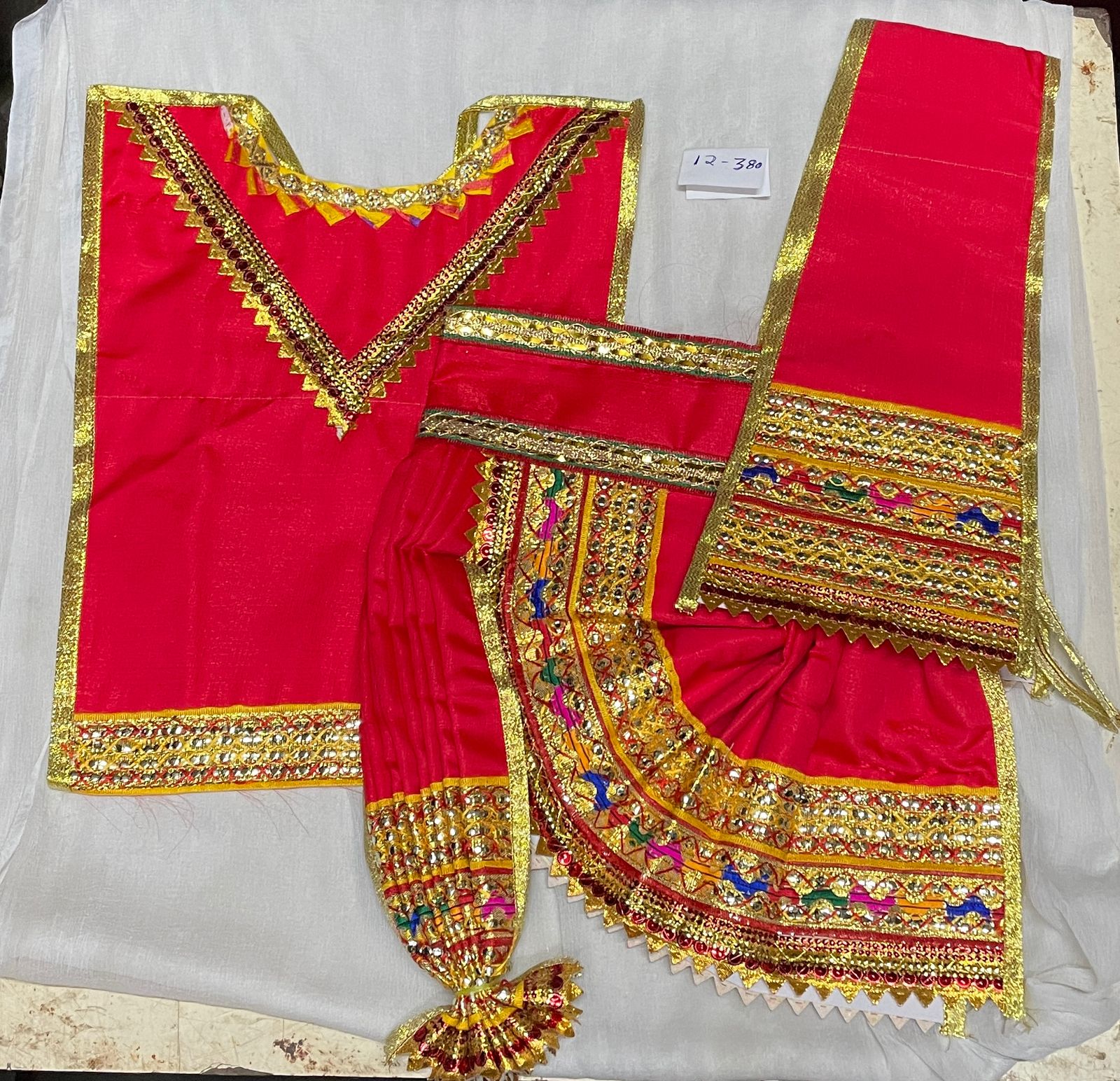 The Hanuman Ji Vastra Set is a traditional devotional attire specially made to dress Lord Hanuman idols with elegance and reverence. Designed from high-quality fabrics and embellished with intricate embroidery, vibrant borders, and auspicious colors like saffron, red, and orange, this vastra set symbolizes strength, protection, and unwavering devotion. Perfect for Tuesdays, Saturdays, Hanuman Jayanti, or daily worship, it adds a touch of spiritual charm to your mandir. Available in various sizes and designs, the Hanuman Ji Vastra Set ensures your beloved deity is beautifully adorned, reflecting your faith and dedication.